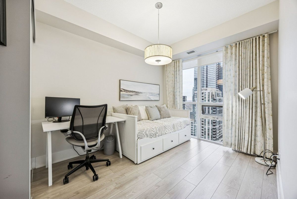 Attention to detail defines this beautifully upgraded owner-occupied unit. The kitchen has been completely transformed, featuring a modern double-size sink, an impressive 8-foot designer quartz waterfall island with deep drawers and ample storage, and a thoughtfully expanded layout that adds approximately 50% more counter space and cabinetry from the original finish. * The spacious 841 sq. ft. floor plan is intelligently designed with no wasted space, offering ideal split bedrooms and comfortably accommodating full-sized furniture-designed for real living, not just the floor plan * This is a well-managed, owner-focused building, not a high-turnover rental property. Residents enjoy a refined lifestyle with abundant visitor parking, a professionally dressed & trained concierge available 24/7, and a luxurious lobby experience. The mature and responsible community is supported by a proactive condo board that takes pride in exceptional property management. * Built by Tridel, this Gold LEED-certified building is constructed with quality and longevity in mind. * Residents have access to outstanding 5-star amenities, including a fully equipped fitness centre, yoga studio, dry and steam saunas, whirlpool, rooftop terrace with BBQ facilities, private movie theatre, and an elegant party room. *** Top-ranked North Toronto C.I. at your doorstep. Steps to vibrant Yonge Street shopping and dining, and minutes to Eglinton Subway Station-soon transforming into a central transportation hub linking all of Toronto through the new LRT.